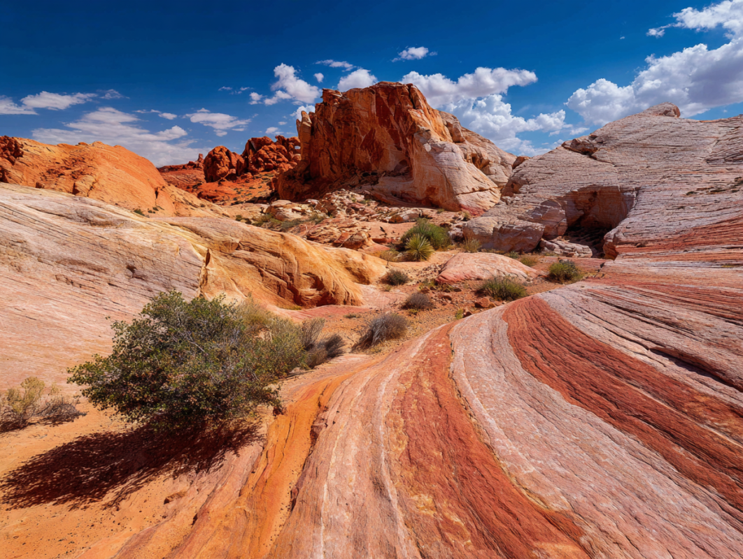 Valley of Fire is a beautiful park with vibrant red sandstone formations, petroglyphs, and panoramic views. Popular trails include the Fire Wave Trail, White Domes Trail, and the Elephant Rock Trail.