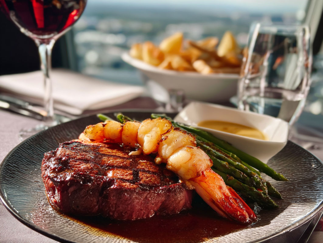 The Top of the World Restaurant is a premier dining destination located in the Stratosphere Tower in Las Vegas. The restaurant features breathtaking panoramic views of the city and offers a diverse menu of gourmet dishes, including prime steaks, seafood, and vegetarian options, as well as an award-winning wine list.
